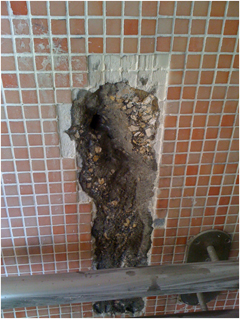 Impermeabilização negativa em paredes com saída de água com caudal activo.