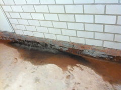 Deutlich sichtbar: die Undichtigkeit der Fugen im Wand-Sohlenbereich
