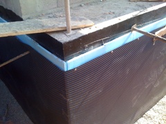 Pamatu ārēja hidroizolācija ar palīmējošo gumijas/ bitumena membrānu