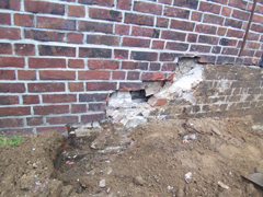 Deutlich sichtbare Beschädigungen des Mauerwerks