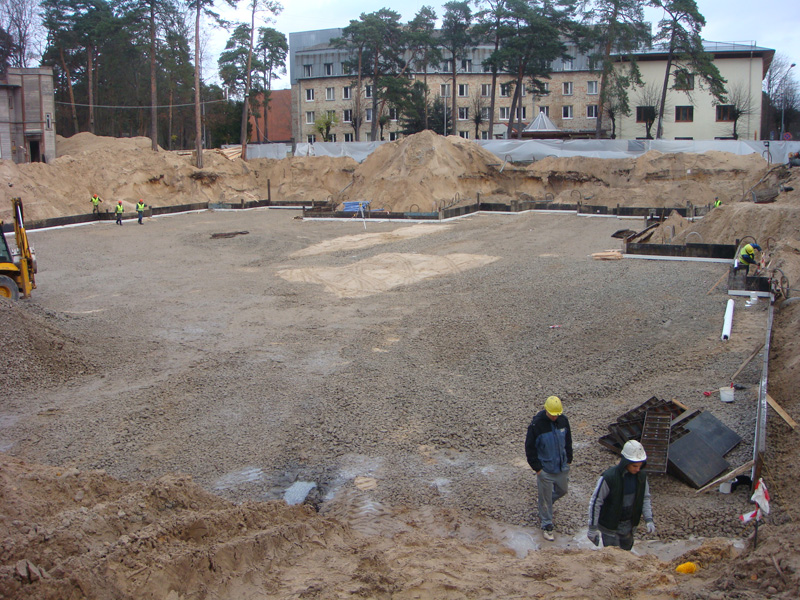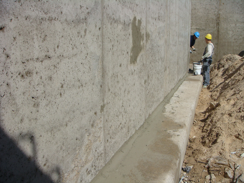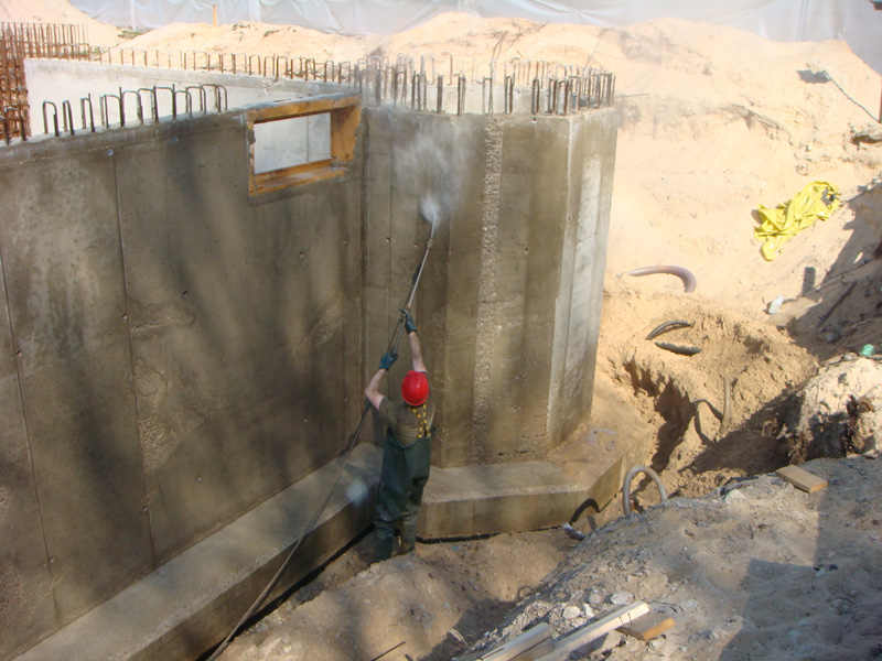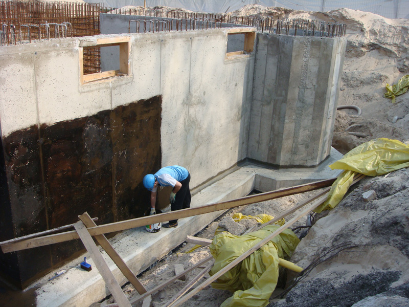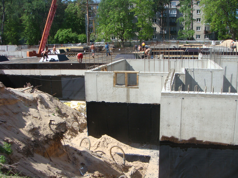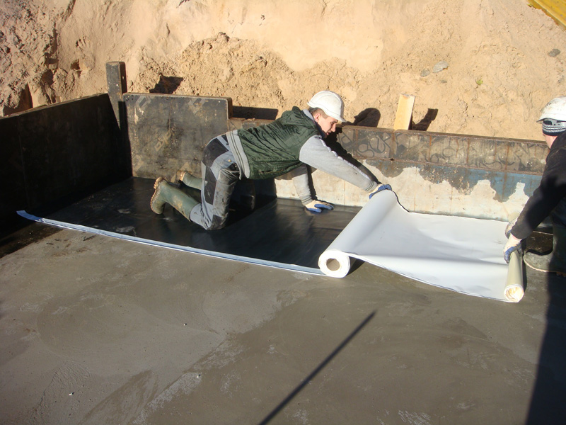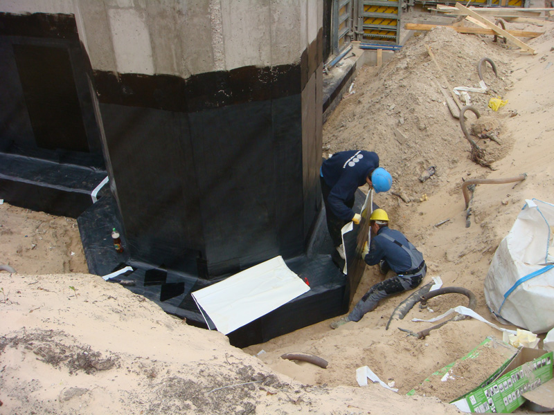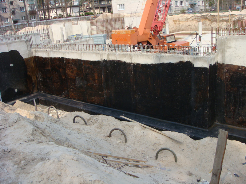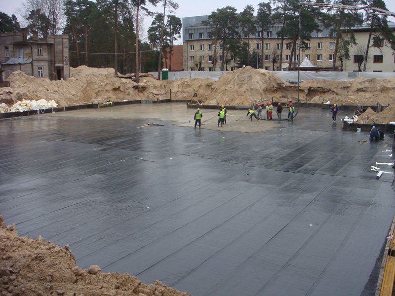 Pamatu ārēja hidroizolācija ar palīmējošo gumijas/ bitumena membrānu